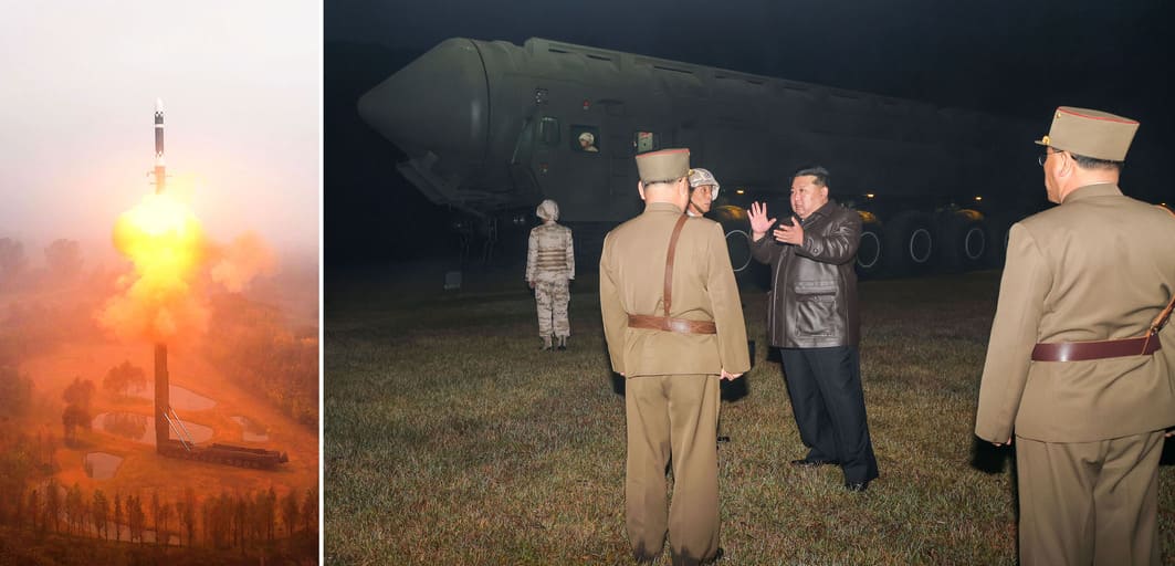 Ким Чен Ын руководит на месте испытательным запуском МБР новейшей модели «Хвасонпхо-19». Октябрь 2024 года.