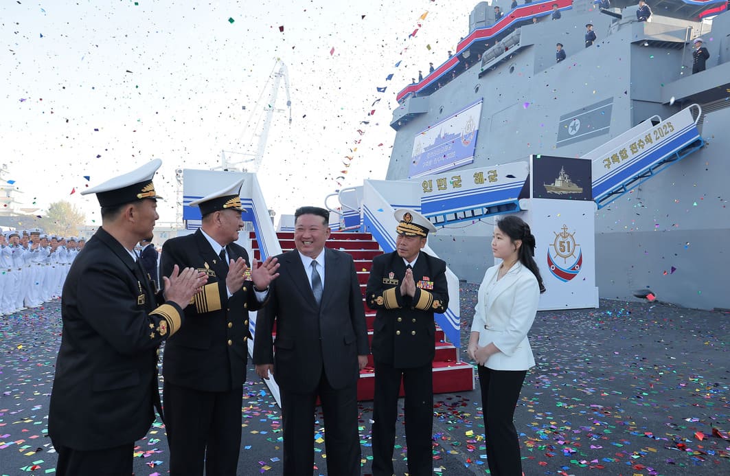 Ким Чен Ын на церемонии спуска на воду эсминца ВМС КНА. Апрель 2025 года.