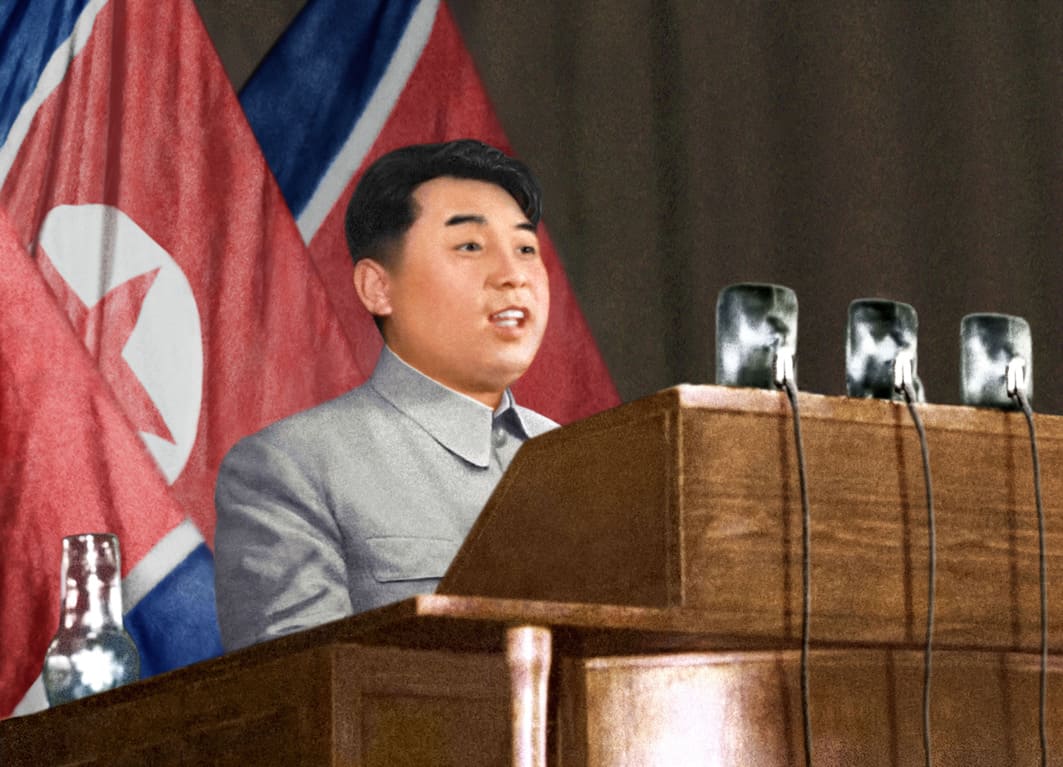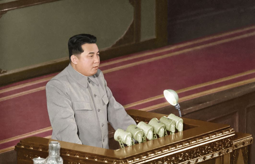 Ким Ир Сен выступает с докладом на учредительном съезде Трудовой партии. Август 1946 года.