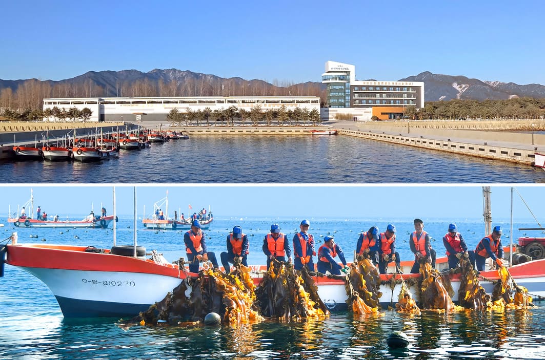 Сбор ламинарии в Марикультурном хозяйстве в городе Синпхо.