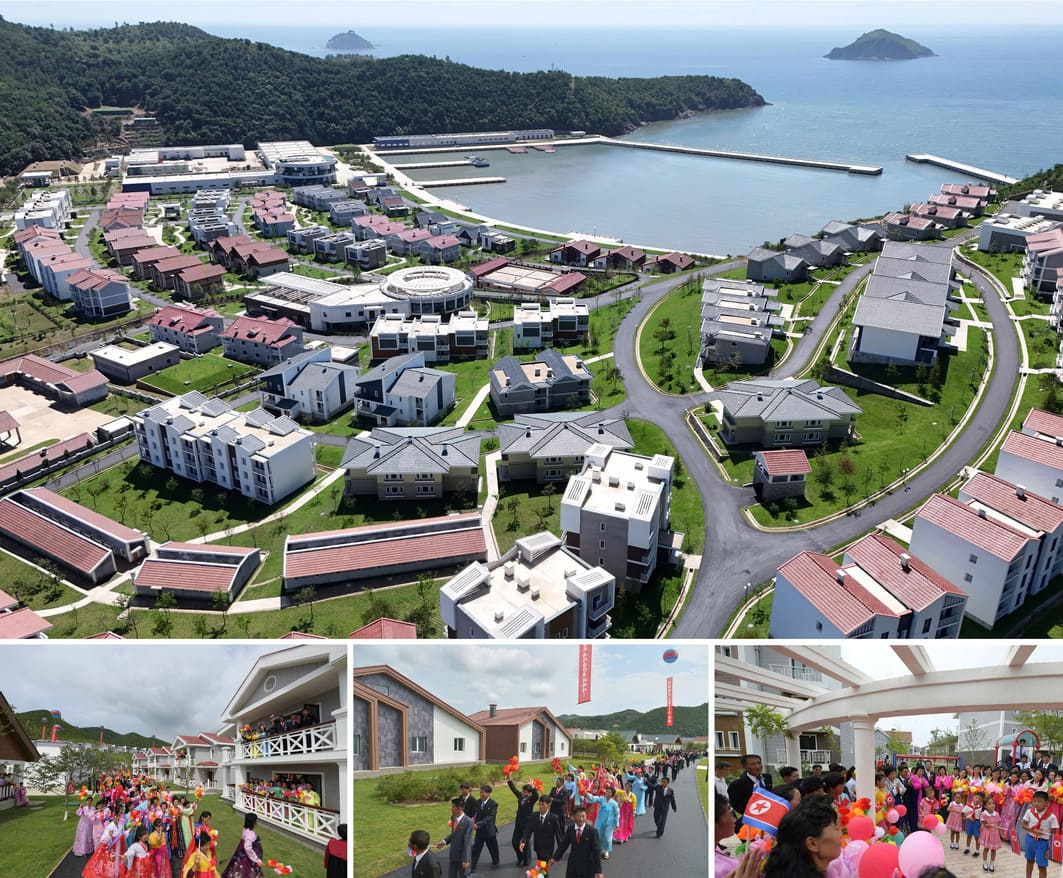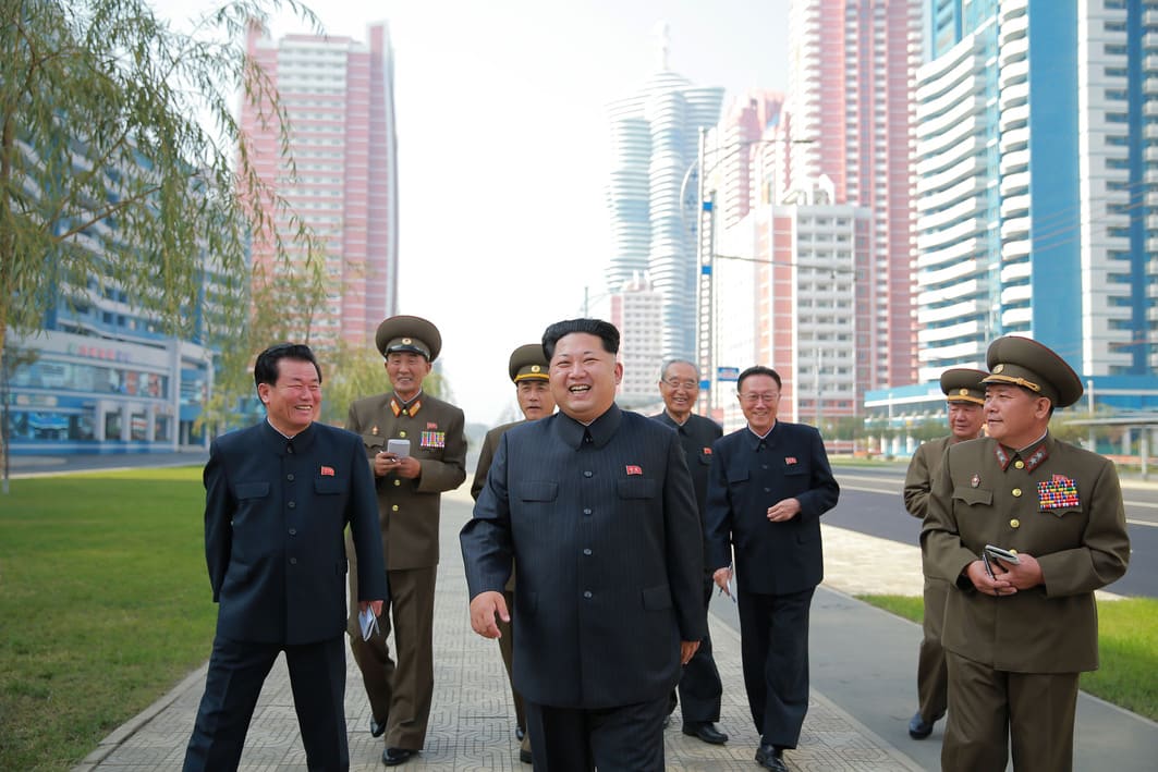 Ким Чен Ын на улице ученых «Мирэ» после завершения ее строительства. Октябрь 2015 года.