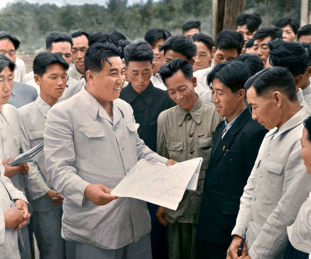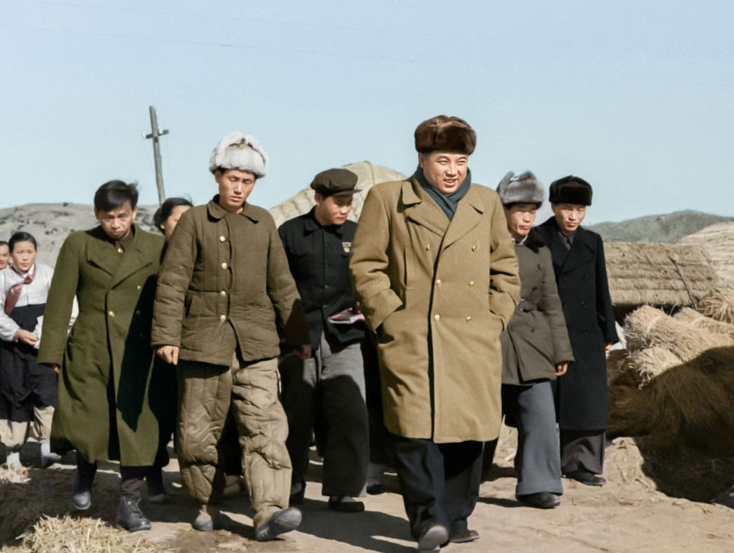 Ким Ир Сен с крестьянами села Чхонсан уезда Кансо. Октябрь 1958 года.