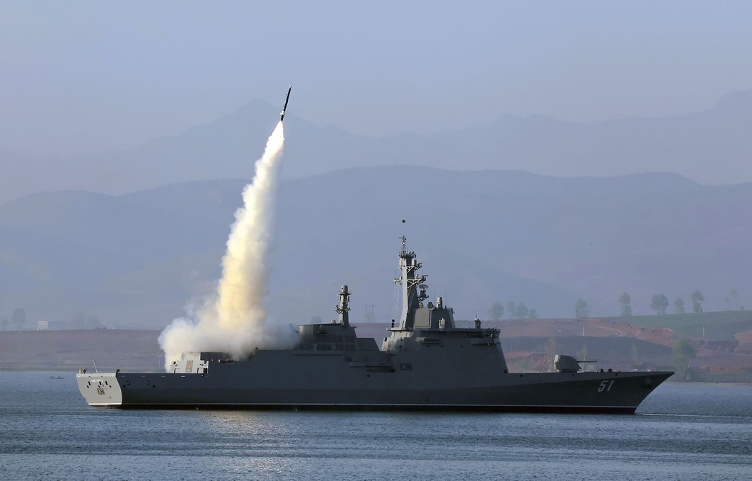 Испытание на боевую применимость системы вооружения многофункционального эсминца «Чвэ Хён».