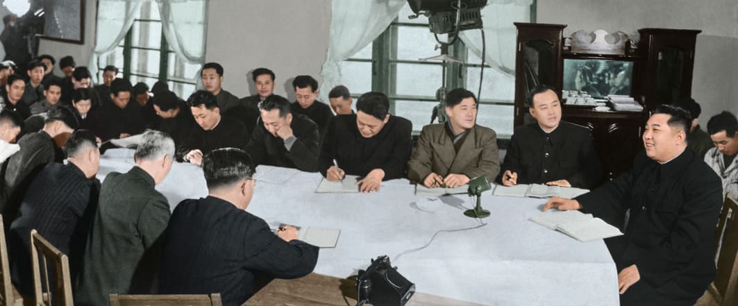 Ким Ир Сен обсуждает проект решения III расширенного заседания Исполкома ЦОК партии. Декабрь 1945 года.