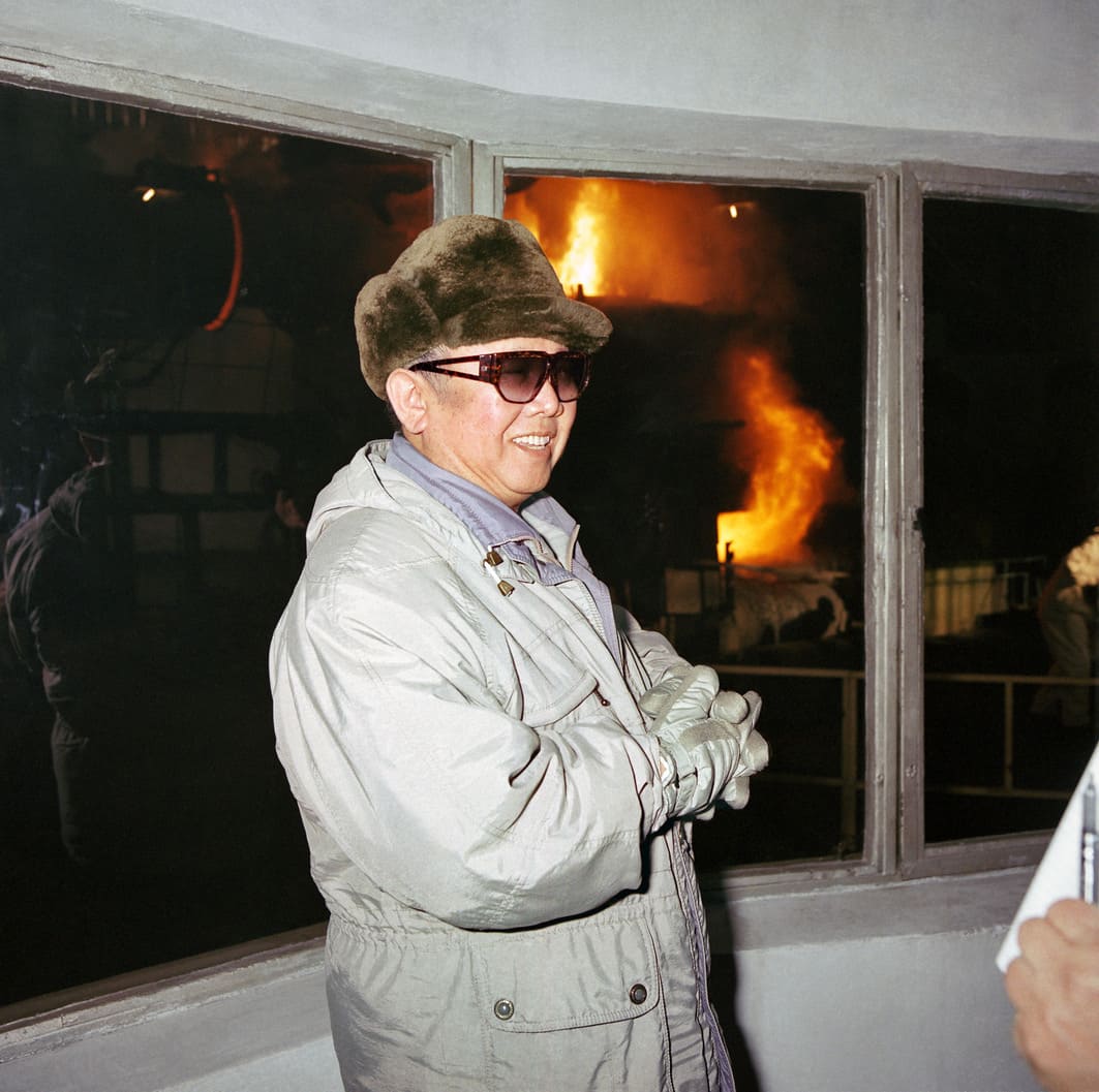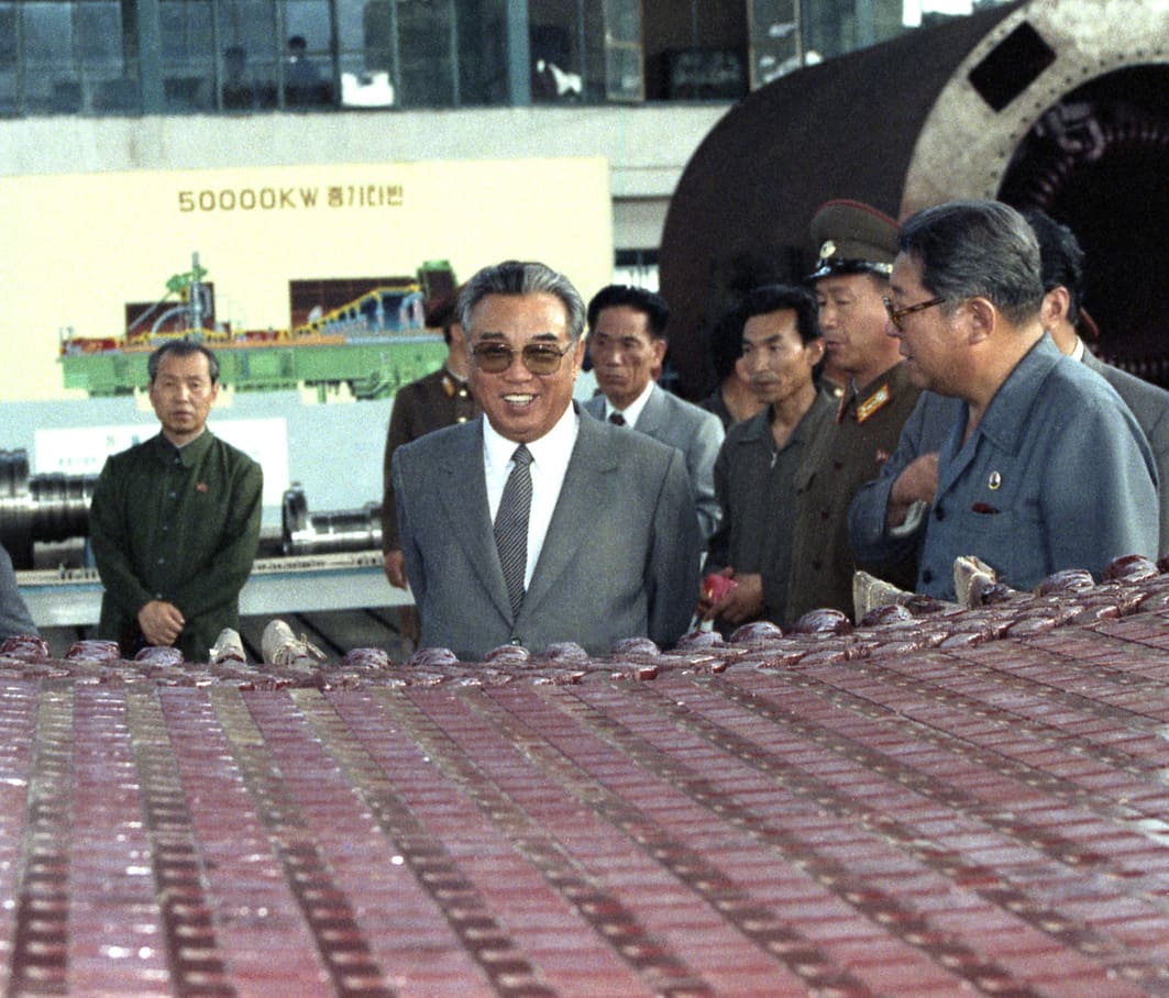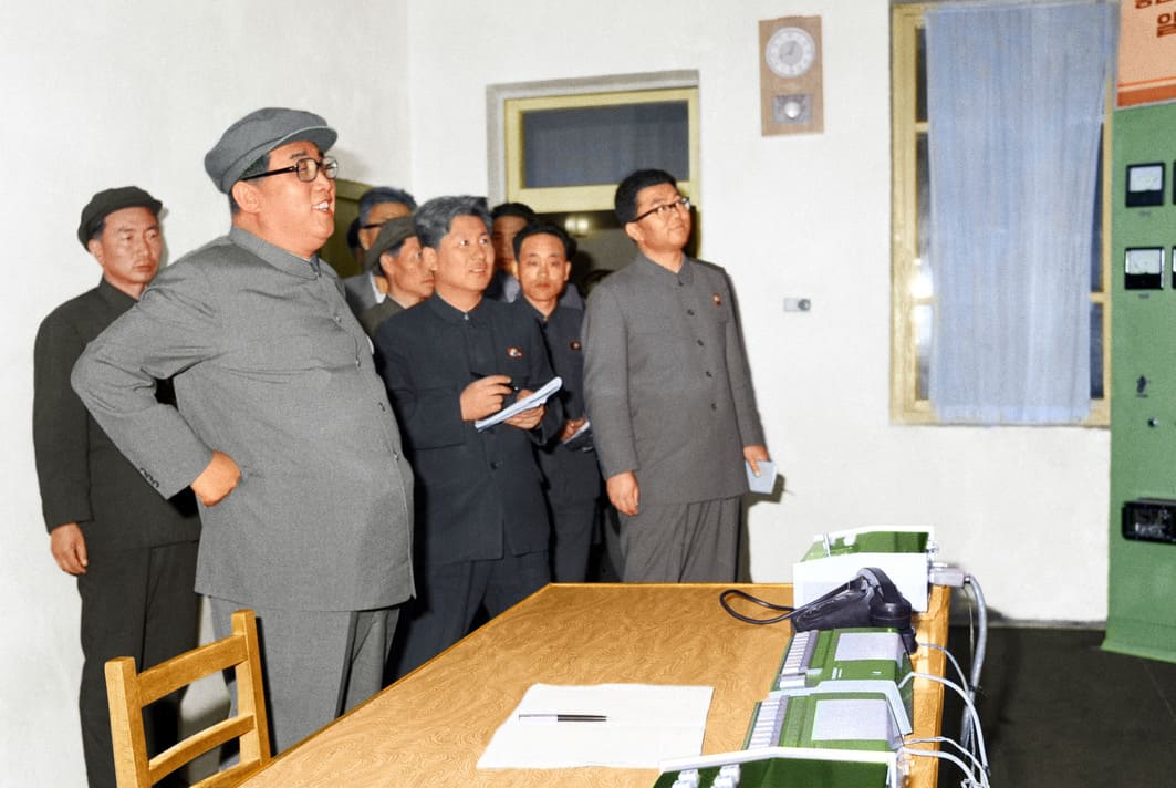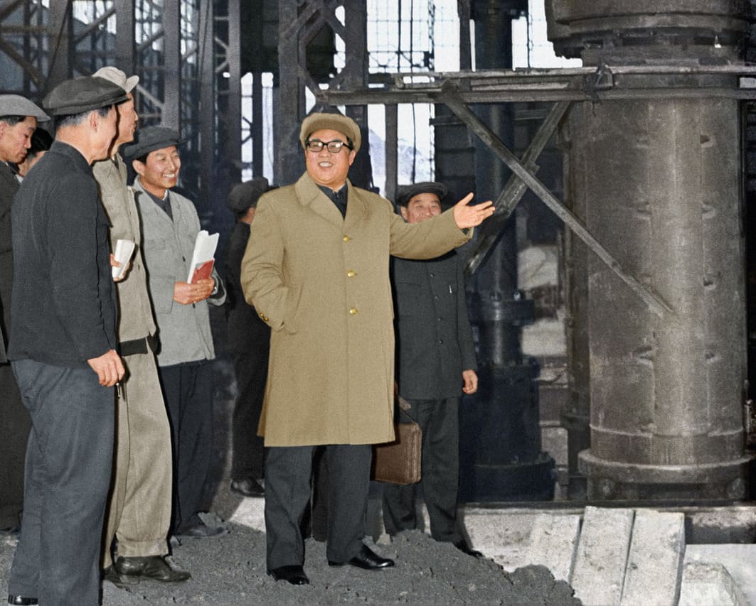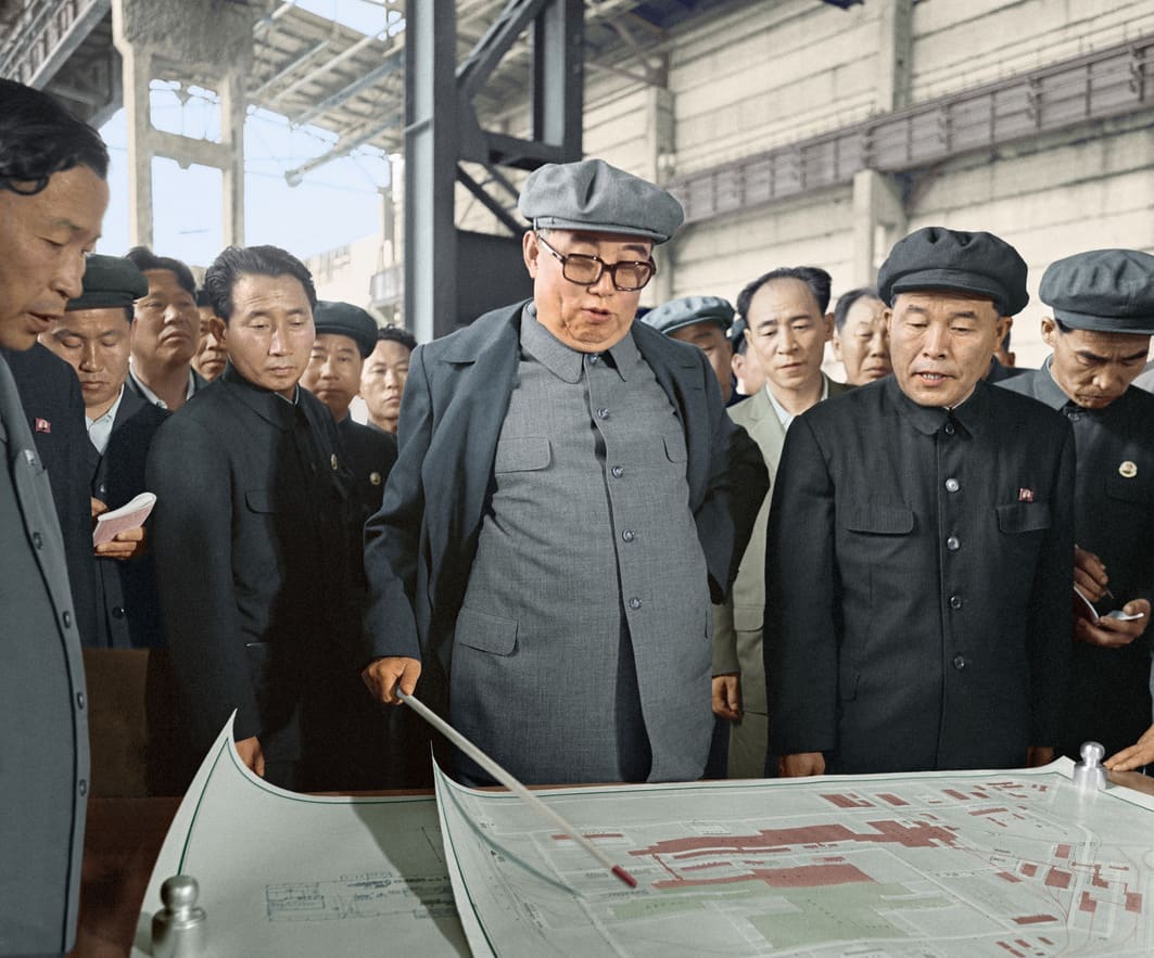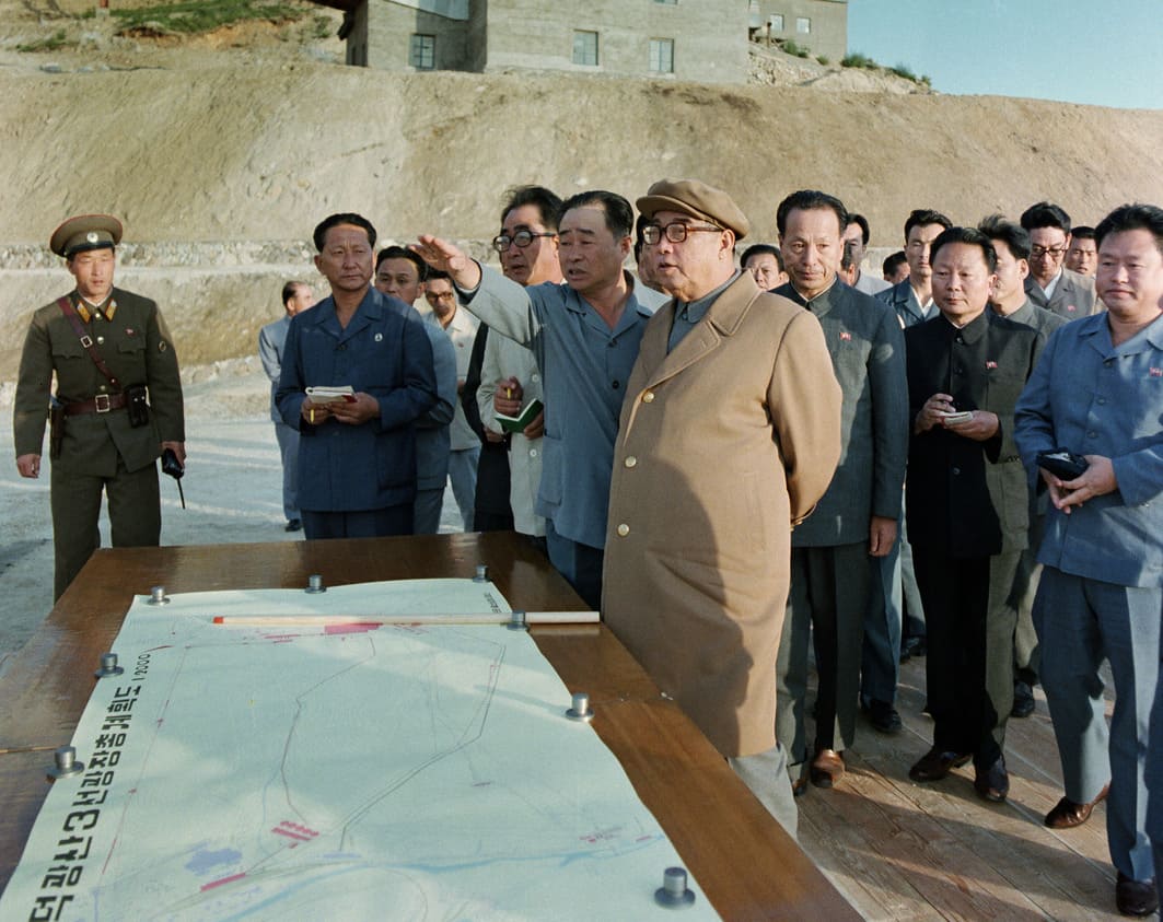 Ким Ир Сен руководит на месте делами обогатительной фабрики №3 Комдокского горнодобывающего комплекса. Август 1983 года.