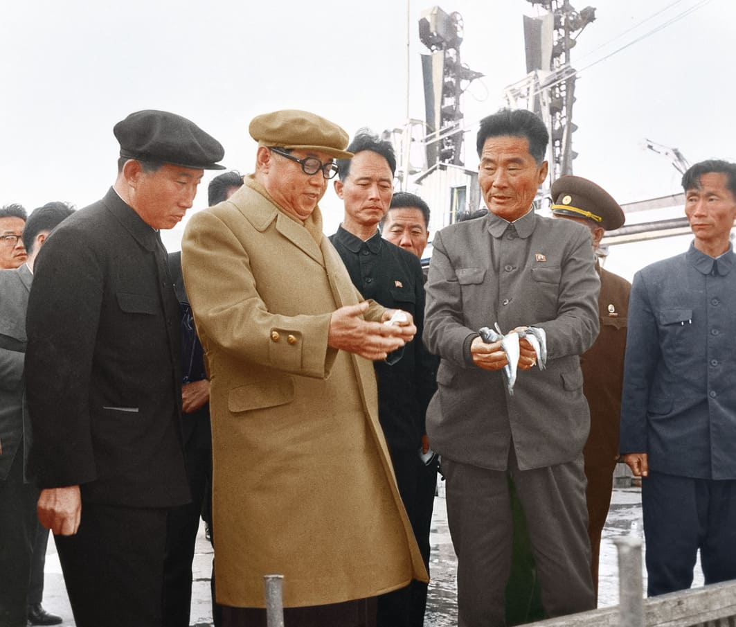 Ким Ир Сен в Вонсанском рыбпромхозе. Октябрь 1976 года.