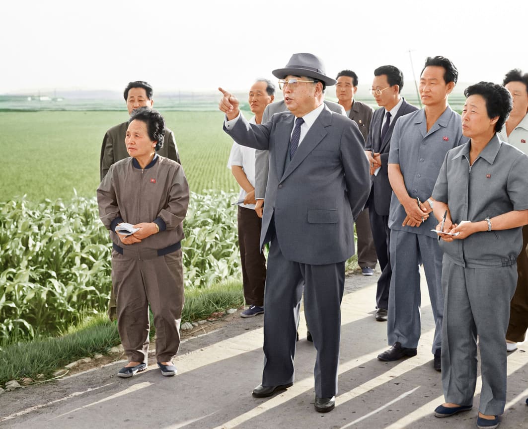 Ким Ир Сен в Рёнчхонском сельхозкооперативе уезда Хванчжу. Сентябрь 1979 года.