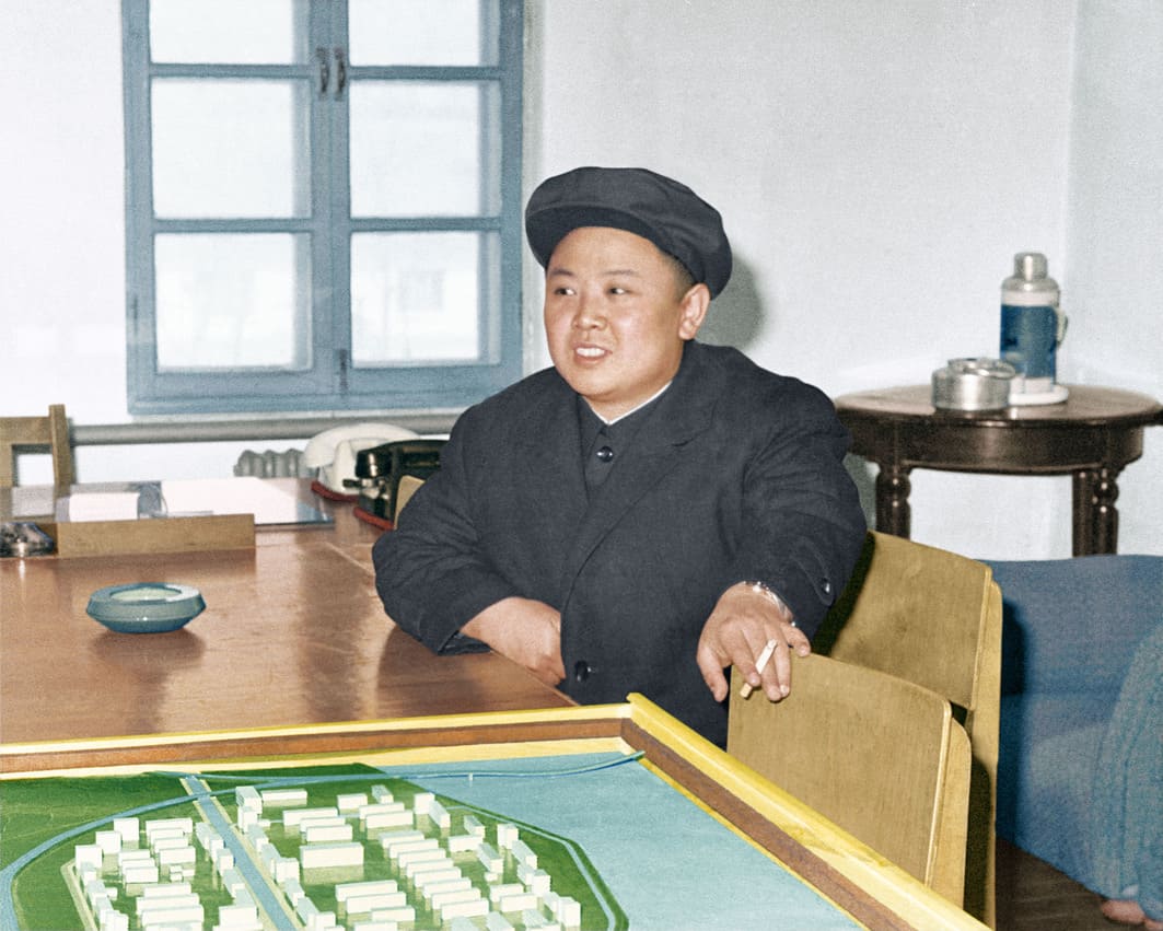 Ким Чен Ир у макета строительства города Пхеньяна. Март 1985 года.