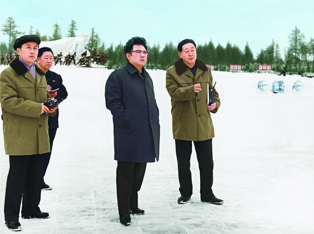 Ким Чен Ир осматривает Самчжиёнский монументальный скульптурный комплекс. Март 1979 года.
