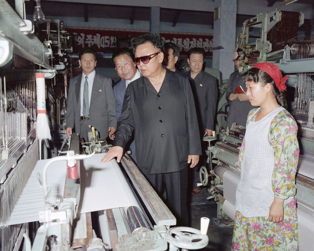 Ким Чен Ир на Пакчхонской шелкоткацкой фабрике. Июнь 2000 года.