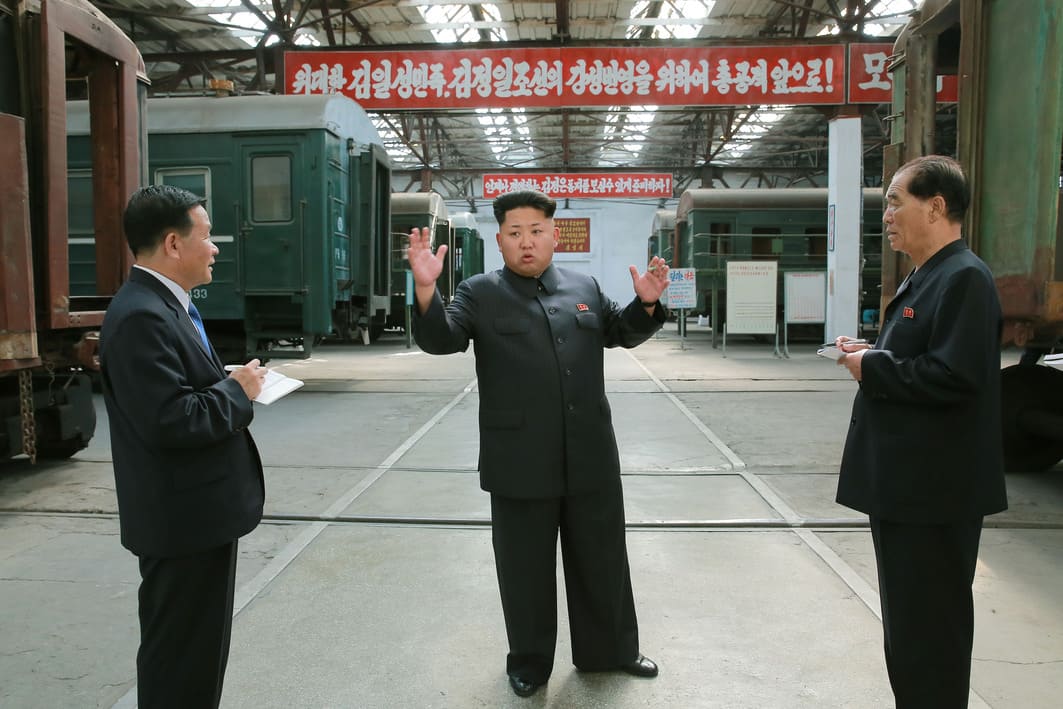 Ким Чен Ын в Электровозостроительном объединении им. Ким Чон Тхэ. Июль 2015 года.