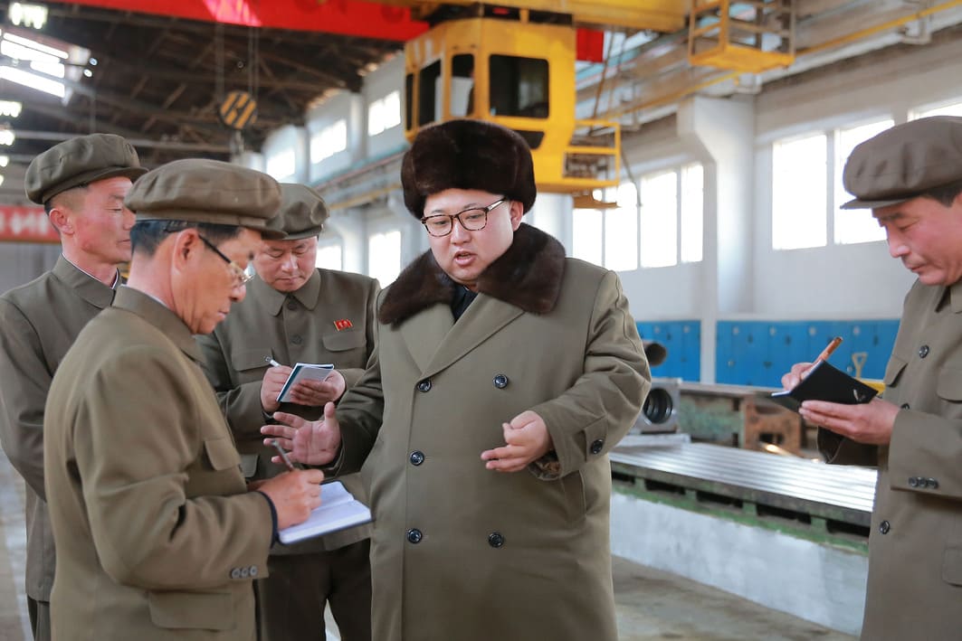 Ким Чен Ын на Кымсонском тракторном заводе. Ноябрь 2017 года.