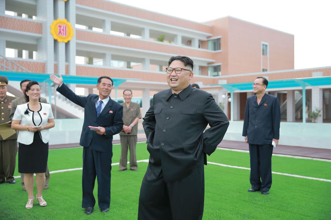 Ким Чен Ын в новопостроенной Пхеньянской средней школе-интернате для сирот. Июль 2016 года.