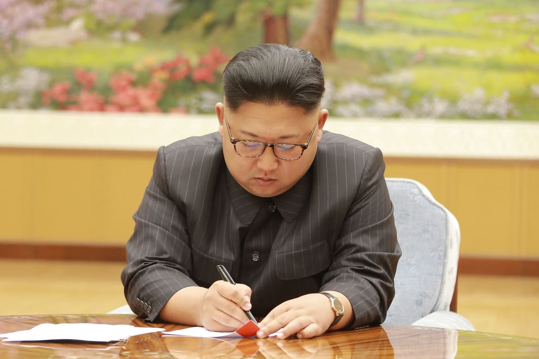 Ким Чен Ын дает собственноручный приказ о проведении испытания водородной бомбы для МБР. Сентябрь 2017 года.