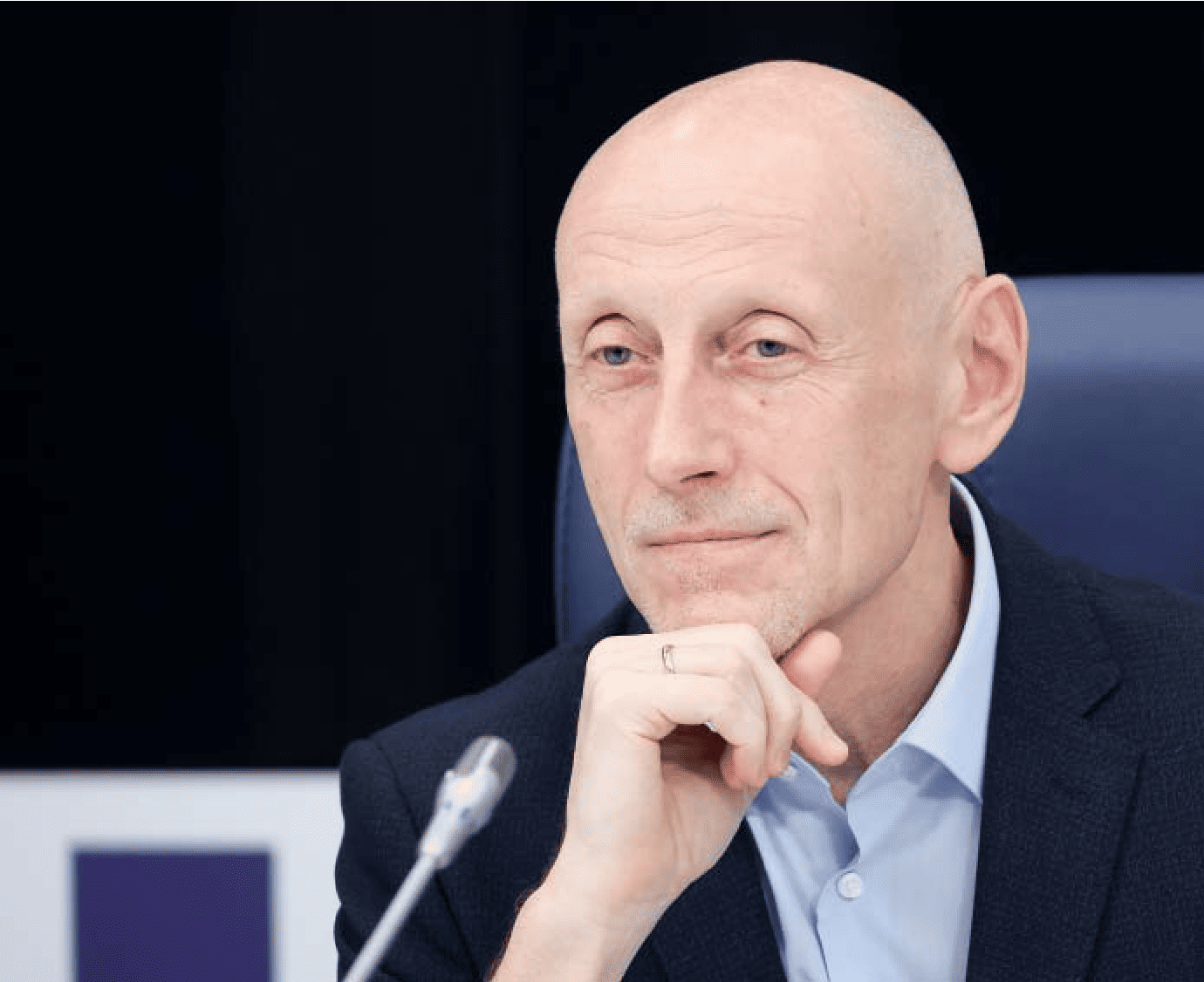Генеральный продюсер документального фильма «Союз — Аполлон. Сила притяжения» Андрей Феофанов во время пресс-конференции, посвящённой 50-летию совместного экспериментального полёта советского и американского космических кораблей «Союз» и «Аполлон»
