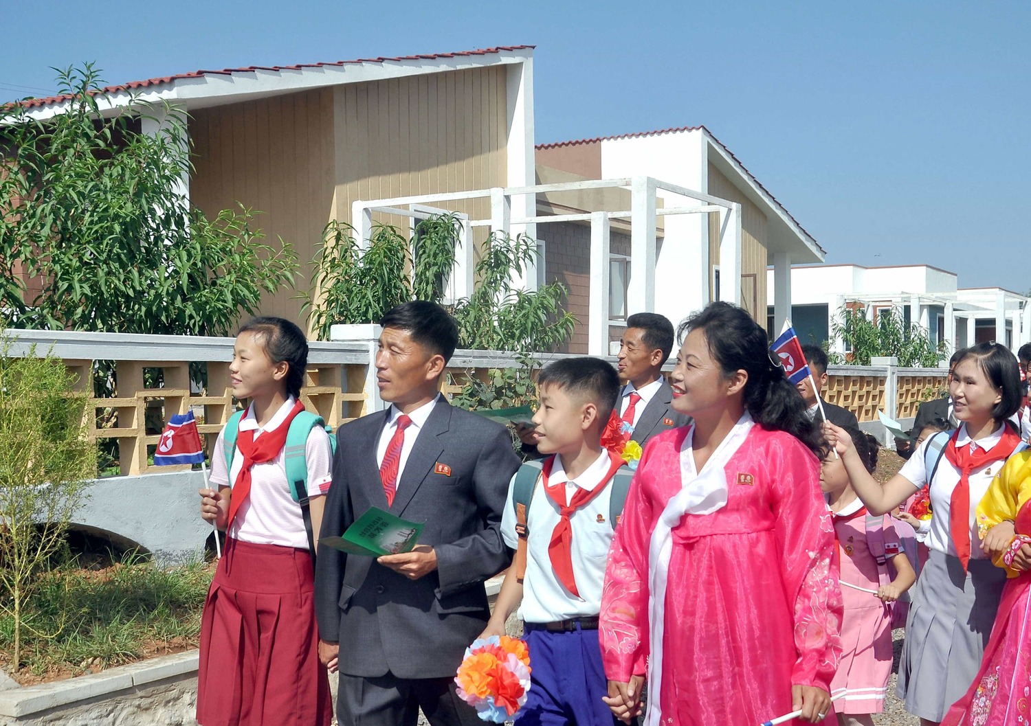 В КНДР согласно политике по строительству жилых домов на 50 тысяч квартир в столице и программе осуществления революции на селе в новую эпоху в столице и на перифериях строятся многочисленные жилые дома и бесплатно распределяются трудящимся народным массам. Дети всей страны в каждый день снабжаются молочными и другими питательными продуктами, а все школьники снабжаются комплектом школьной формы, обуви, сумки и учебных принадлежностей. Везде и всюду в стране активно ведется строительство для создания блага народа, в том числе строительство предприятий местной промышленности, учреждений здравоохранения, комплекса культурно-бытовых услуг, зернохранилища и т.д.