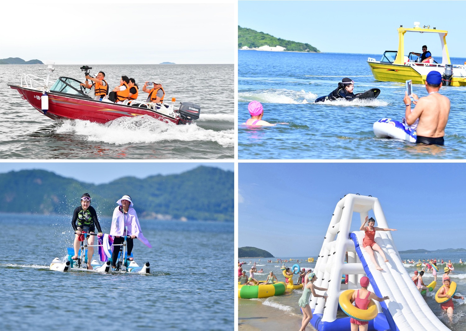 Многочисленные люди проводят веселое время отдыха в Вонсан-Кальмаской прибрежной туристической зоне.