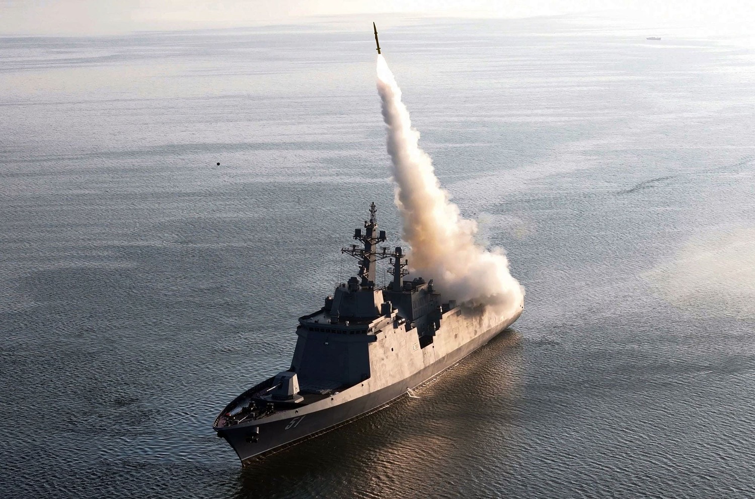 Многоцелевой эсминец «Чвэ Хён» проводит испытание для применимости системы вооружений корабля в боевых условиях (Апрель 2025 г.)