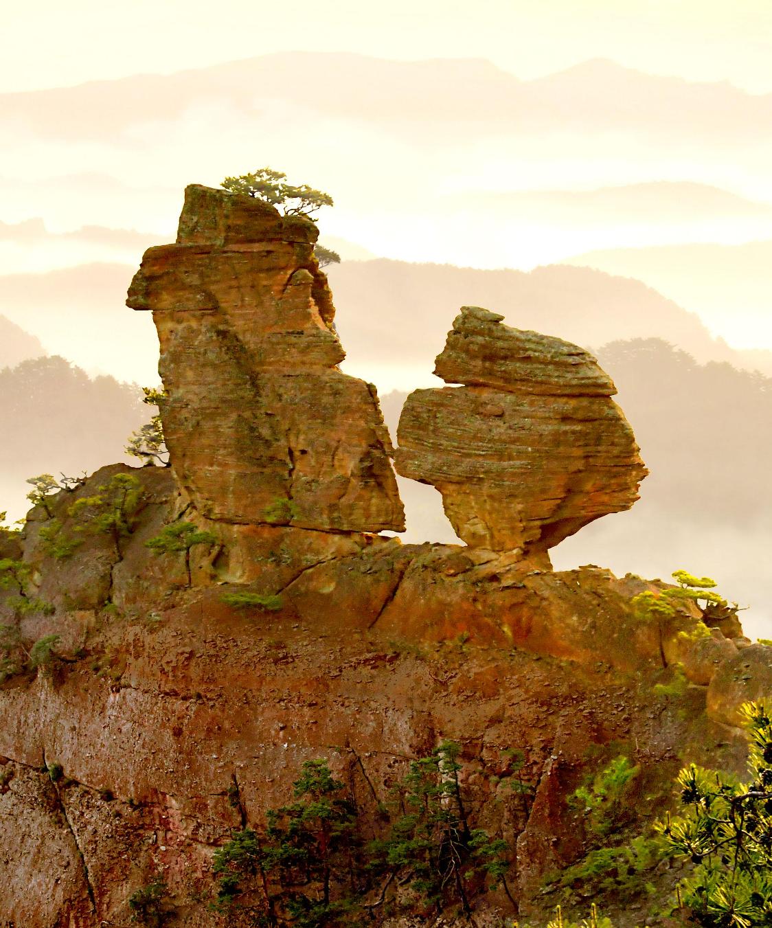 Причудливые скалы в горах Чхилбо умножают необычную красоту горы.