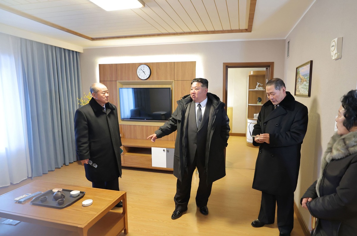 Уважаемый товарищ Ким Чен Ын в новопостроенном отеле «Мильён» в Самчжиёнской туристической зоне. Декабрь 2025 года.