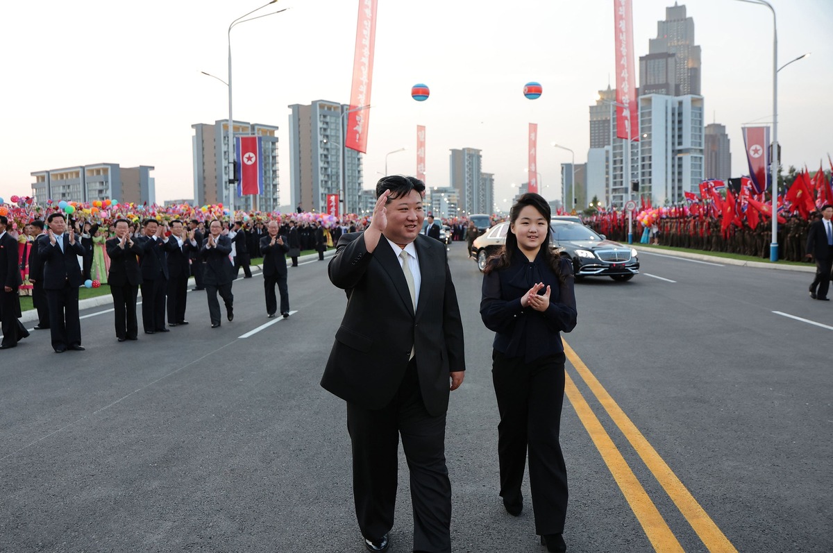 Уважаемый товарищ Ким Чен Ын на церемонии завершения строительства Пхеньянской объединенной больницы. Октябрь 2025 года.