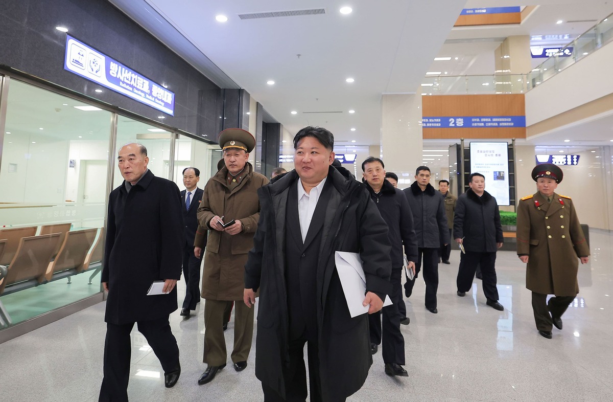Уважаемый товарищ Ким Чен Ын в Кусонской городской больнице после ввода в строй. Декабрь 2025 года.