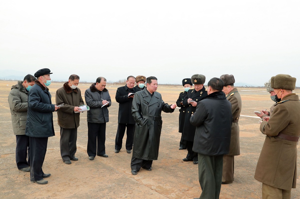 Уважаемый товарищ Ким Чен Ын ознакомляется на месте с участком под строительство Рёнпхоского тепличного хозяйства. Январь 2022 года.