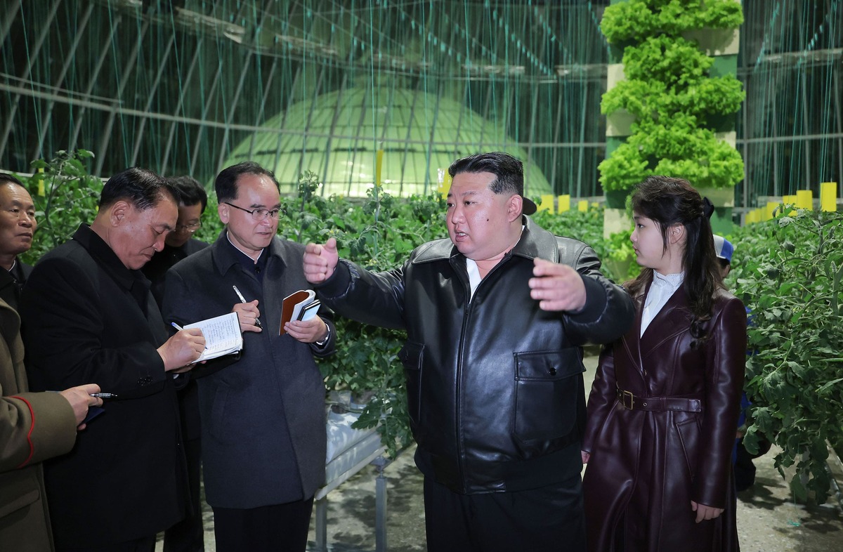 Уважаемый товарищ Ким Чен Ын на Кандонском тепличном комбинате после ввода в строй. Март 2024 года.