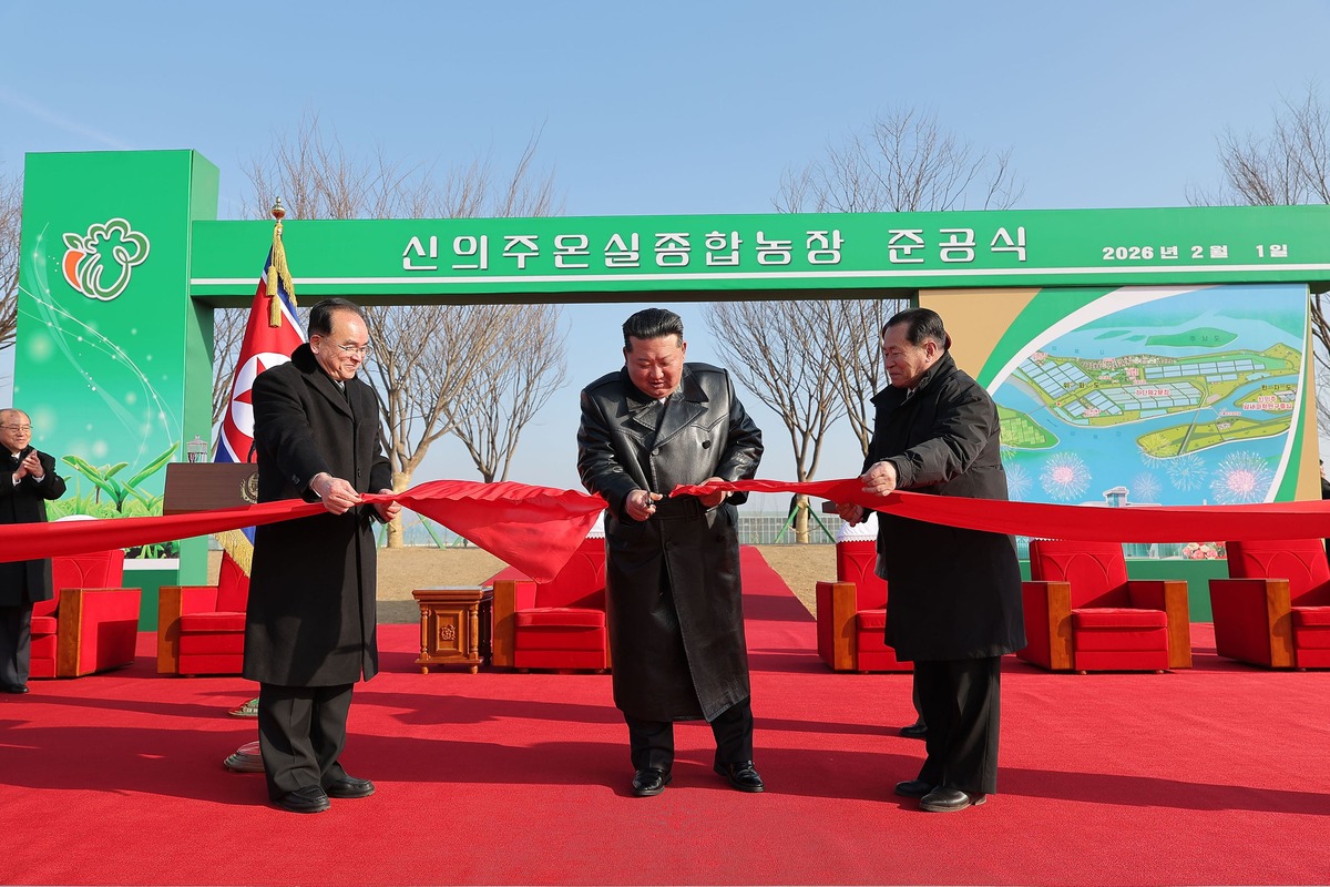 Уважаемый товарищ Ким Чен Ын на церемонии ввода в строй Синичжуского тепличного комбината. Февраль 2026 года.