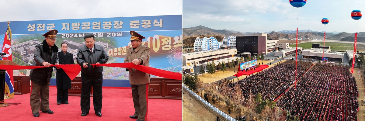 Уважаемый товарищ Ким Чен Ын на церемонии начала строительства предприятий местной промышленности в уезде Сончхон. Февраль 2024 года.