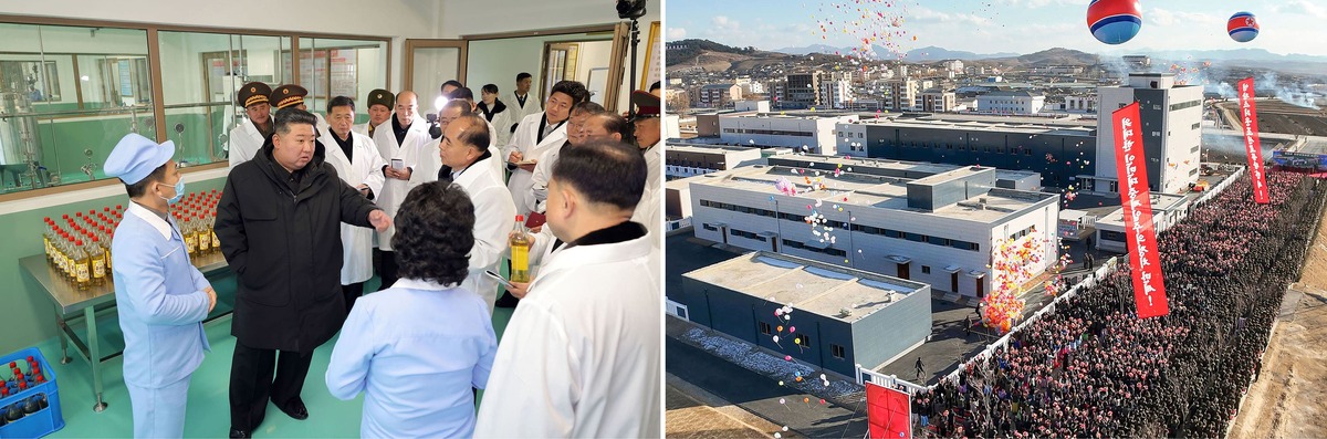 Уважаемый товарищ Ким Чен Ын осматривает предприятия местной промышленности в уезде Чэрён после ввода в строй. Январь 2025 года.