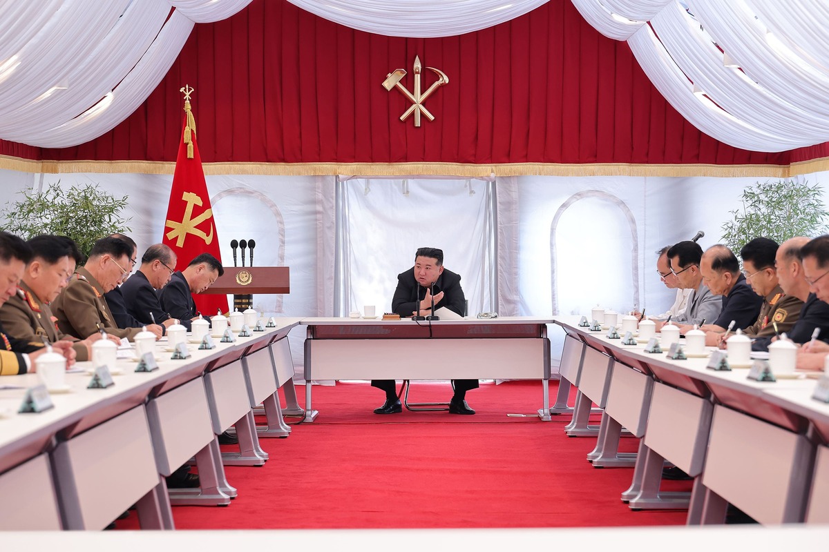 Уважаемый товарищ Ким Чен Ын на совещании по подготовке к строительству Марикультурного хозяйства в городе Синпхо. Июль 2024 года.