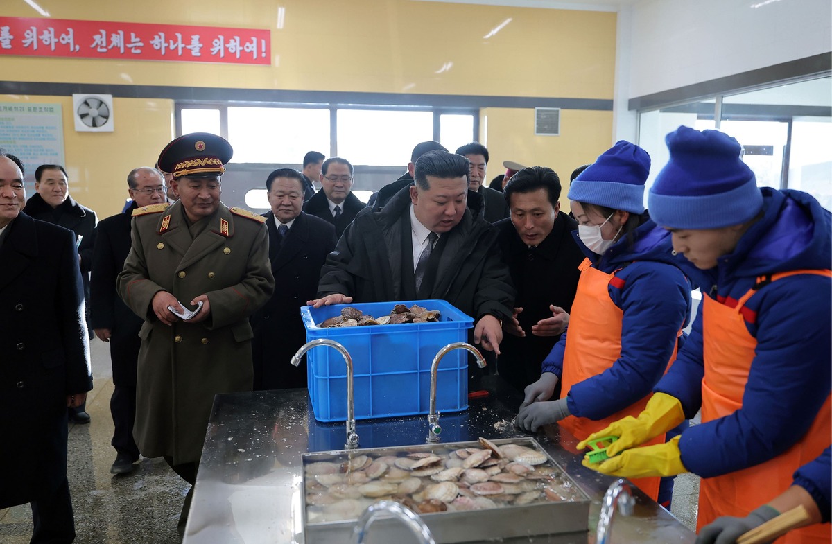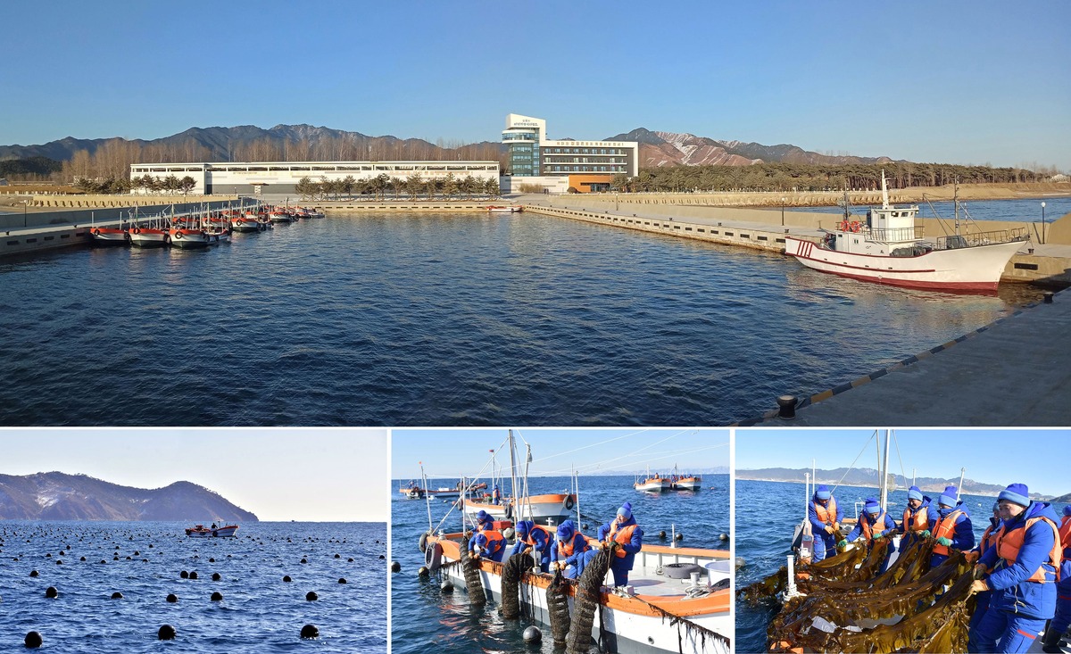 Уважаемый товарищ Ким Чен Ын осматривает Марикультурное хозяйство в городе Синпхо после ввода в строй. Декабрь 2024 года.