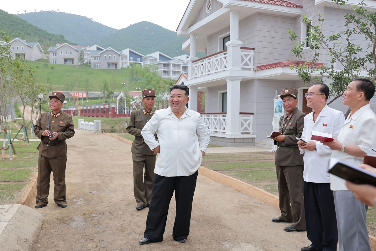 Уважаемый товарищ Ким Чен Ын на стройке города Самчжиёна. Июль 2024 года.