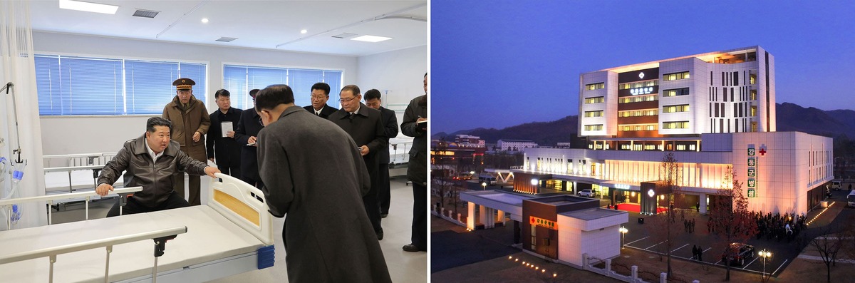 Уважаемый товарищ Ким Чен Ын в Кандонской уездной больнице после ввода в строй. Ноябрь 2025 года.