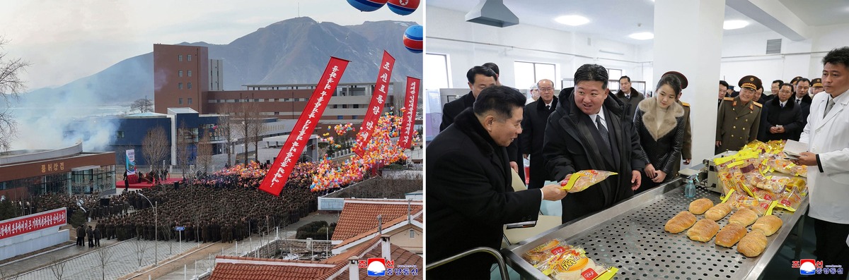 Уважаемый товарищ Ким Чен Ын после церемонии ввода в строй предприятий местной промышленности в городе Синпхо осматривает Синпхоскую городскую пищевую фабрику. Декабрь 2025 года.