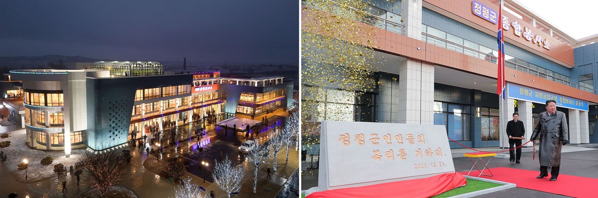 Уважаемый товарищ Ким Чен Ын осматривает комплекс культурно-бытовых услуг в уезде Чонпхён после ввода в строй. Декабрь 2025 года.
