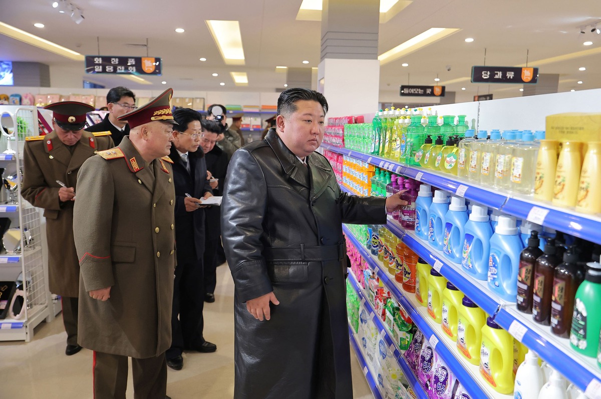 Уважаемый товарищ Ким Чен Ын осматривает комплекс культурно-бытовых услуг в уезде Кандон после ввода в строй. Декабрь 2025 года.