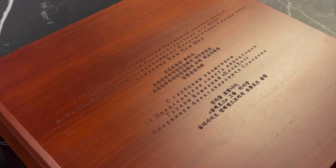 Господин Соколов передал через посла памятный дар для Генерального секретаря Трудовой партии Кореи, Верховного главнокомандующего Вооружёнными силами КНДР уважаемого товарища Ким Чен Ына.