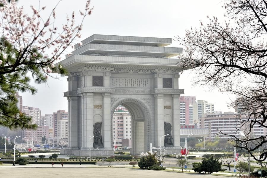 Вторая половина дня: После обеда посетить Триумфальные ворота высотой 60 м, возведенные в 1982-ом году на память возвращения с триумфом великого вождя товарища Ким Ир Сена, который провёл антияпонскую революционную борьбу к победе и освободил Родину от колониального господства японского империализма. Эти ворота — самые высокие в мире.