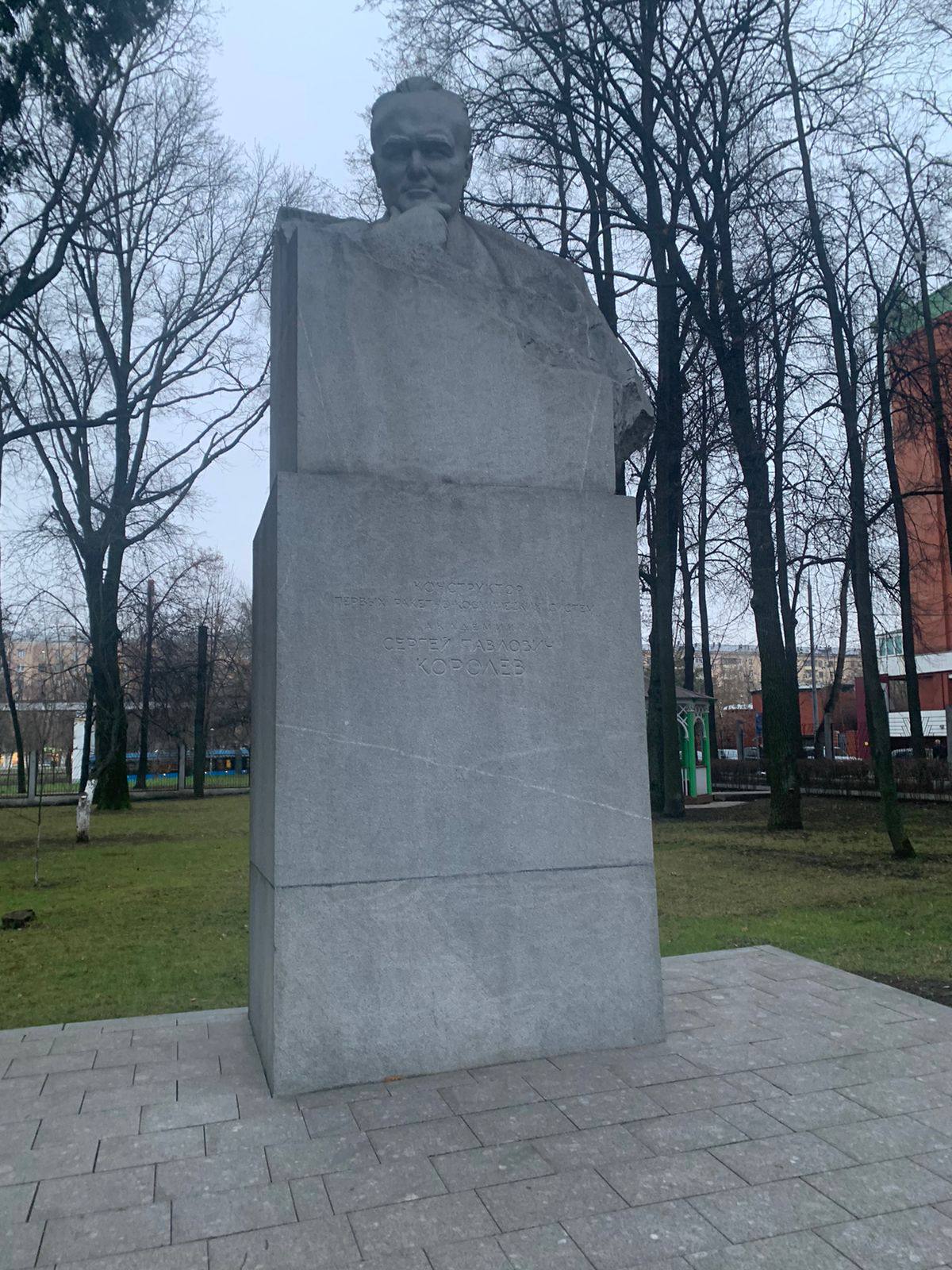 В 2006 году — к 100-летию со дня рождения Королёва (по старому стилю приходилось на 30 декабря 1906 года) — на территорию музея был перенесён гранитный памятник главному конструктору, ранее с 1967 года находившийся на Аллее Героев Космоса. Автором проекта стал скульптор Андрей Файдыш-Крандиевский. Статуя учёного возвышается на постаменте, на котором высечена надпись: «Конструктор первых ракетно-космических систем академик Сергей Павлович Королев». В 1974 году памятник был принят под государственную охрану.