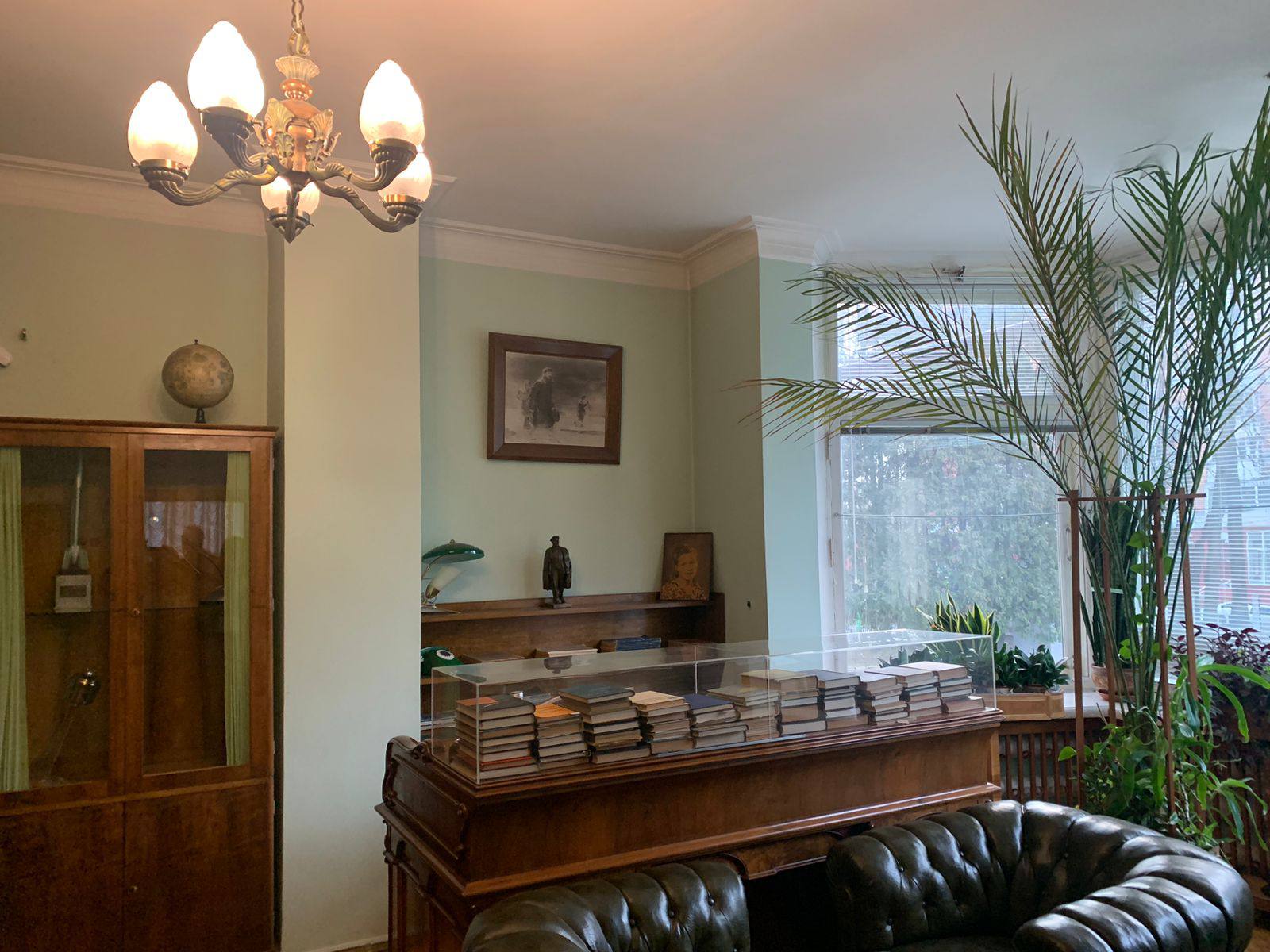 На полке камина устроился кинопроектор «Украина-4» (это отсыл к малой родине Королёва, конструктор родился в Житомире, входившем тогда в состав Российской империи). В отличие от телевизора, который Королёв недолюбливал и смотрел крайне редко (считая это впустую потерянным временем), кинопроектор пришёлся ему по душе. В последний раз кинопроектор включал Юрий Гагарин в первую годовщину смерти конструктора. Рядом с проектором установлен магнитофон «Днепр-9», который Королёв подарил супруге.