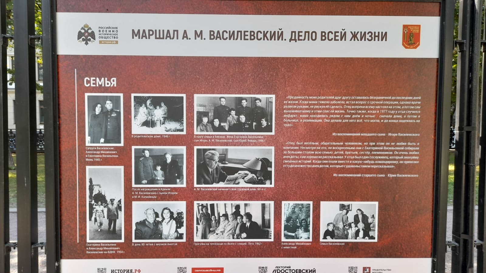 Фотовыставка на Гоголевском бульваре рассказывает о жизненном пути Александра Михайловича Василевского – человека, чье имя неразрывно связано с ключевыми событиями Великой Отечественной войны. Под его руководством были разработаны и успешно проведены такие крупные операции, как Сталинградская битва, Курская битва, Белорусская операция «Багратион» и Маньчжурская операция.