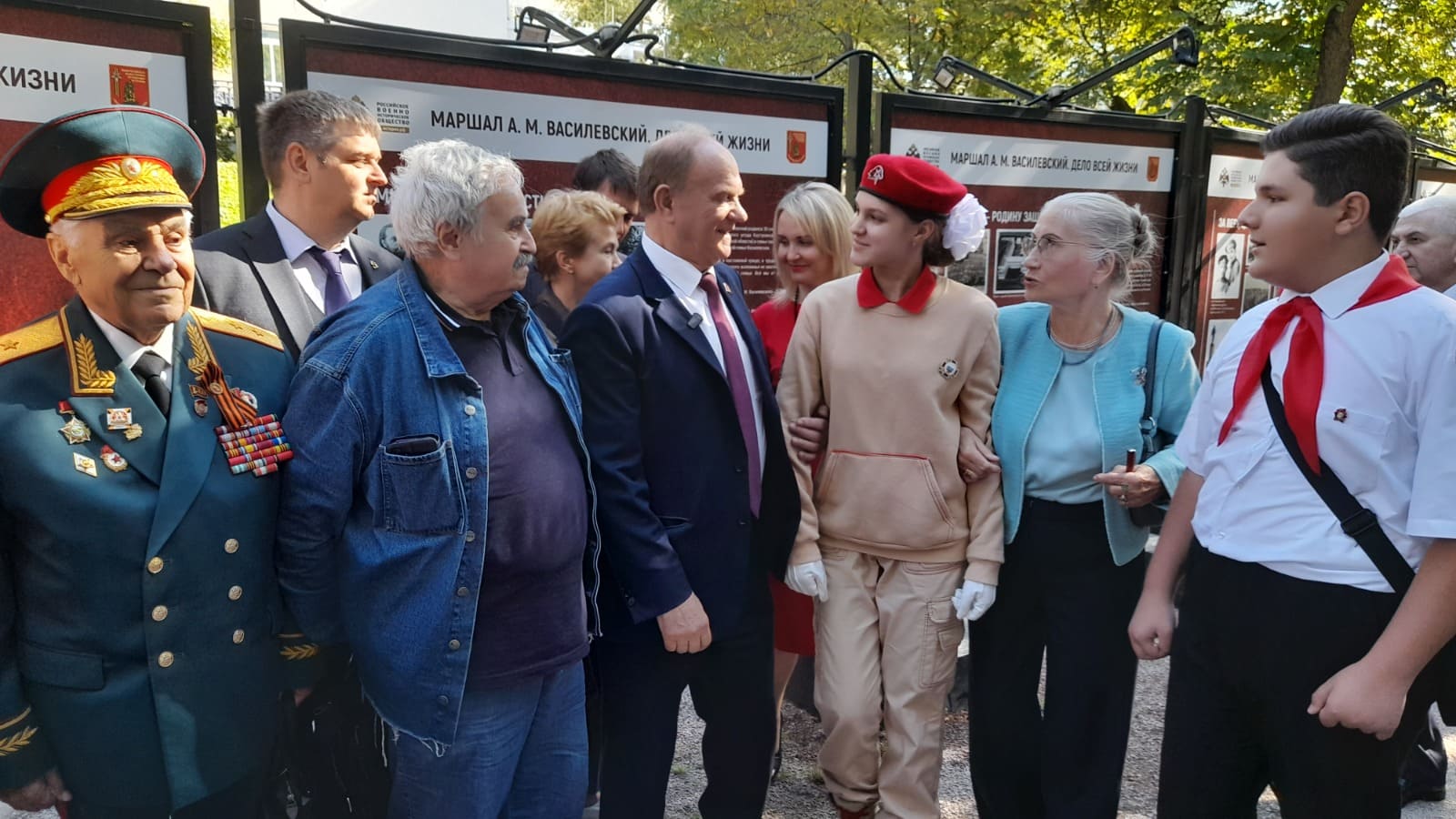 «Дорогие друзья, уважаемые гости, дорогие товарищи! Александр Михайлович нашел прекрасные слова, обращаясь к выпускникам Академии генерального штаба „Много на земле прекрасных уголков. Но как одна у человека мать, так одна у человека родина! В жизни каждого человека наступает момент, когда он должен встать на защиту своего Отечества“. Так и было в жизни маршала Василевского. Он возглавлял ключевые операции в годы Великой Отечественной войны. В 1956 году решением двух маршалов – Жукова и Василевского – был создан Советский комитет ветеранов войны. Именно здесь, в этом доме, решались важнейшие задачи, включая создание Могилы неизвестного солдата у Кремлевской стены и Музея Победы на Поклонной горе. Очень приятно видеть сегодня юных карбышевцев, ребят из нашей подшефной школы Маресьева, участников движения поисковиков. Мы награждаем здесь лучших из них, и я уверен, что лучшие получат высокие награды в нашем Зале славы. А вы, ребята, получите первую в своей жизни памятную медаль о посещении этой выставки».